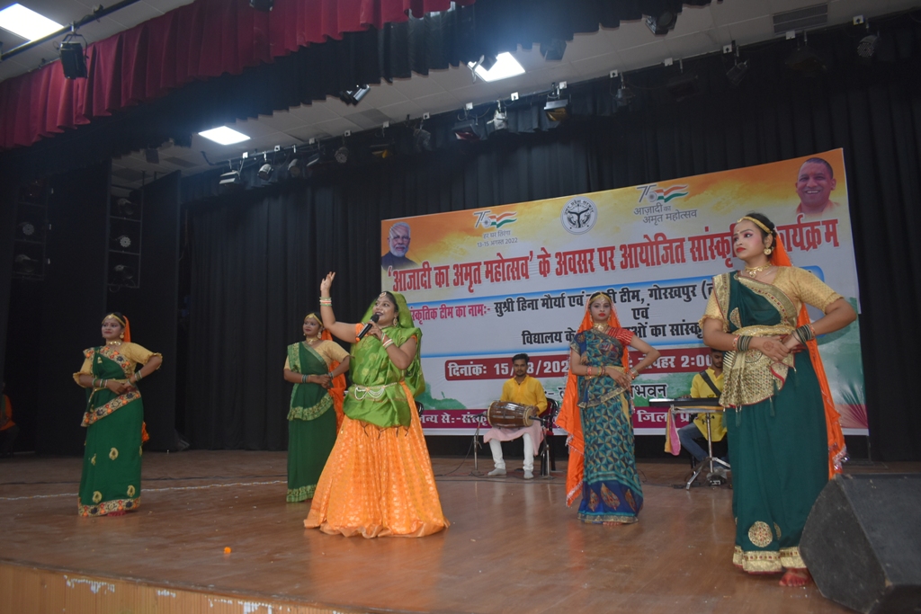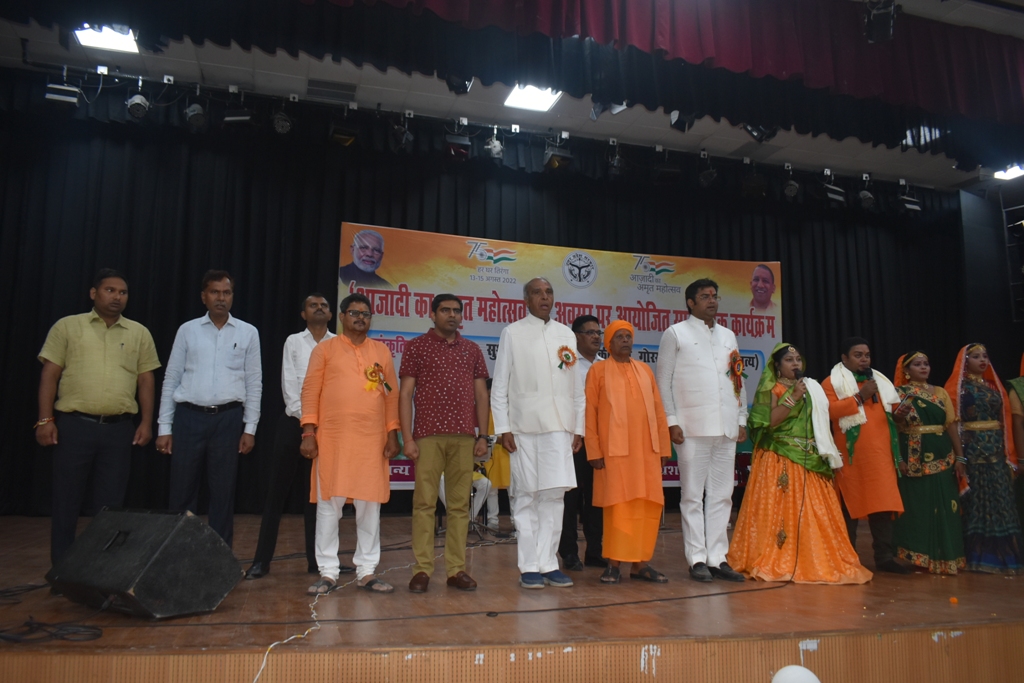 सिद्धार्थनगर 15 अगस्त 2022 : आजादी का अमृत महोत्सव के अन्तर्गत स्वतंत्रता सप्ताह एवं हर घर तिरंगा कार्यक्रम के तहत सुश्री हिना मौर्या एवं उनकी टीम द्वारा लोहिया कलाभवन में मा0 सांसद डुमरियागंज श्री जगदम्बिका पाल, मा0 विधायक शोहरतगढ़ श्री श्यामधनी राही, मा0 विधायक शोहरतगढ श्री विनय वर्मा, जिलाधिकारी श्री संजीव रंजन, मुख्य विकास अधिकारी श्री जयेन्द्र कुमार, जिला विकास अधिकारी शेषमणि सिंह, प्रभारी जिला सूचना अधिकारी डाॅ0 राहुल गुप्ता की उपस्थिति में सांस्कृतिक कार्यक्रम सम्पन्न हुआ।